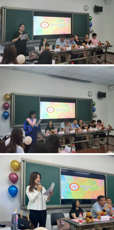 接着,本科班主任代表翟月琴老师、研究生导师代表徐煜老师讲话。翟月琴老师提到同学们要提前做好毕业后的规划,希望毕业生们一步一个脚印,走好未来人生的路;徐煜老师说到在离开学校轻松欢快的氛围后,同学们必然经历一定挫折,希望大家不惧困难,写好人生的剧本,走好人生的道路。两位老师的殷殷嘱托,寄托着对毕业生们一路乘风破浪、逐梦远航的祝福。
