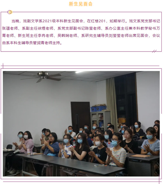 开学季|有朋自远方来,是枚萌新 ——戏剧文学系2021级本科新生入学报到暨新生见面会