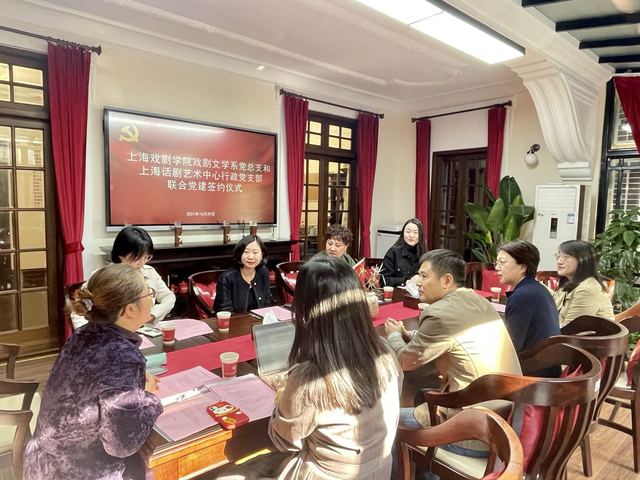 10月29日,上海戏剧学院戏剧文学系党总支和上海话剧艺术中心行政党支部联合党建签约仪式在上海戏剧学院党建服务中心举行。上海话剧艺术中心党委书记田水,艺术室副主任、行政党支部书记李古川,上海戏剧学院戏剧文学系党总支书记张璟,系主任、党总支副书记陈军及其他上话行政支部、上戏戏文系总支党员教师出席。