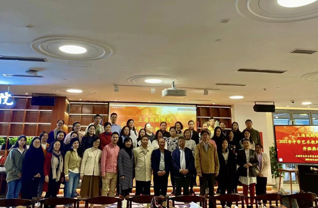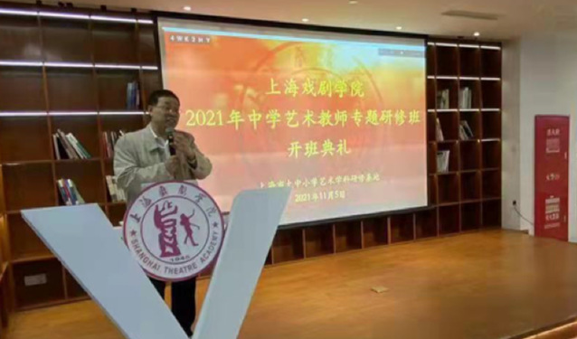 为充分发挥上海高校对本市基础教育教师专业发展的支撑作用,拓展教师的学科视野,提升教师的审美修养,培育教师的综合艺术能力,2021年11月5日至7日,由上海市教育委员会主办,上海市师资培训中心和上海戏剧学院联合承办的2021年大中小学艺术学科研修基地中学艺术教师专题研修班在上海戏剧学院顺利举行,共有来自本市13个区的41名中学艺术教师参加培训。上海市师资培训中心党委副书记、副主任殷以杰出席开班仪式并致辞,上海戏剧学院教务处处长、研究生部主任沈亮教授出席开班仪式并致辞。上海戏剧学院张生泉教授主持开班仪式。