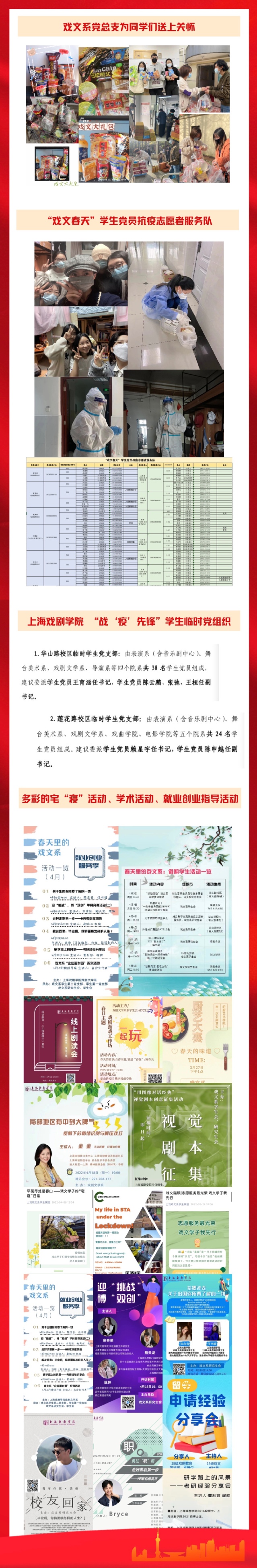 为进一步贯彻党中央、教育部和市委关于疫情防控的相关要求,发挥党的政治优势、组织优势,鼓舞身处不同年级、不同校区的学生党员们凝聚力量,扛起特殊责任、拿出特殊担当共同“抗疫”,2022年4月16日晚七点,上海戏剧学院戏文系学生第一党支部、第二党支部在线上举行“疾风知草劲 危难显担当”专题组织生活会。