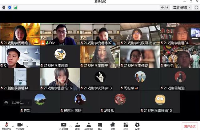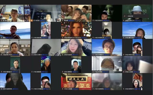 学期伊始,20戏教的《阅读与观摩》课就面临着两线四地的分裂课堂。老师在苏州居家隔离,两名来自深圳的同学分别在酒店和昌林路校区隔离,其他同学则到教室中集体进行线下网课。即使有重重屏幕阻隔,却并未降低同学们对这门课的热情。