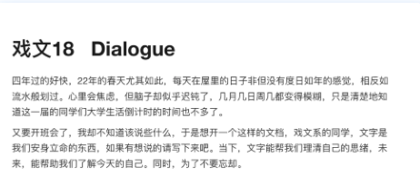 “文字是我们安身立命的东西”,在上戏戏文系求学的四年,深以为然。最后,借由一位同学在文档中写下的话作为结尾:“看见、记忆、纪录和表达,本就是一团无法分割的血肉。”