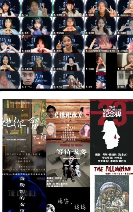 紧接着的就是20级戏教班的大二下学期表导演训练期中经典片段线上汇报。持续了近5个小时的汇报,在线上吸引了70多位观众,大家在结束后纷纷对这场汇报表示肯定。对于同学们而言,这是一场富有特别意义的班会。疫情中,班级同学并没有受限于宿舍的排练环境和线上排练的形式,在疫情防控规定允许的情况下,同学们用丰富的创造力圆满完成排练,为在场的每一个人传达着温暖的力量。