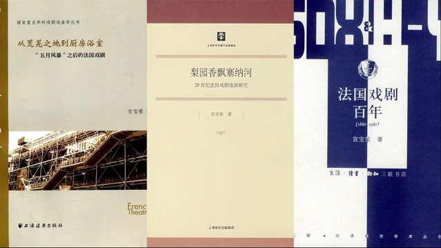与此同时,宫宝荣教授致力于科研工作,先后承担国家社科基金艺术学项目“外国戏剧研究及其对中国戏剧的影响”、文化部项目“新中国舞台上的外国戏剧研究”等。2019年,由其担任首席专家的国家社科基金艺术学重大项目“当代欧美戏剧研究”获批,目前正在紧锣密鼓地进行。出版专著《法国戏剧百年》(获上海市哲学社会科学成果奖、文化部科学研究成果奖)《梨园香飘塞纳河——20世纪法国戏剧流派研究》《从荒芜之地到厨房浴室——五月风暴之后的法国戏剧》等,翻译《戏剧符号学》等。