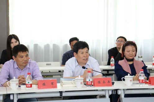上戏戏文系主任陈军教授向南通市实验中学、崇川区教体局、南通市戏剧家协会赠送《戏文名师》一书,旨在让合作方了解上戏戏文系的历史和文脉。