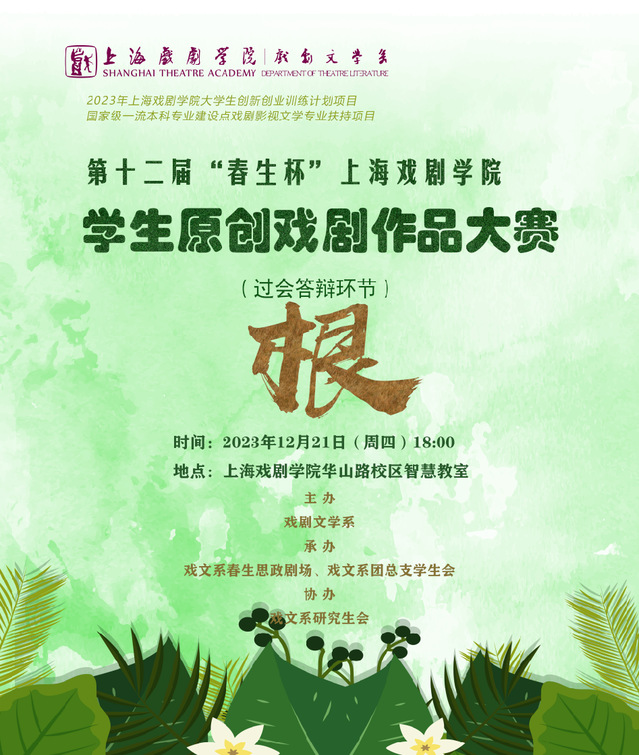 12月21日,第十二届“春生杯”上海戏剧学院学生原创戏剧作品大赛过会答辩环节于华山路校区智慧教室顺利举行。此次“春生杯”剧本评选首次加入“模拟”市场化过会答辩环节,增加大戏赛道,引入行业一线的导师,以“三新”赋能学生发展,这是上半年开展的学习贯彻习近平新时代中国特色社会主义思想主题教育调研课题的延伸落地。
