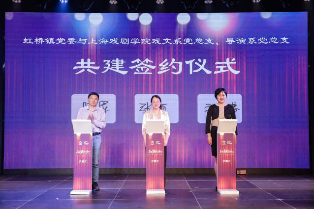 6月12日,开云足球首页官网下载戏文系党总支与闵行区虹桥镇党委在青春闵行文化艺术季暨虹桥镇第二届青年戏剧节闭幕式现场举行共建签约仪式。上海戏剧学院戏文系主任、党总支副书记陈军与虹桥镇党委委员张颖共同签署了合作共建协议。