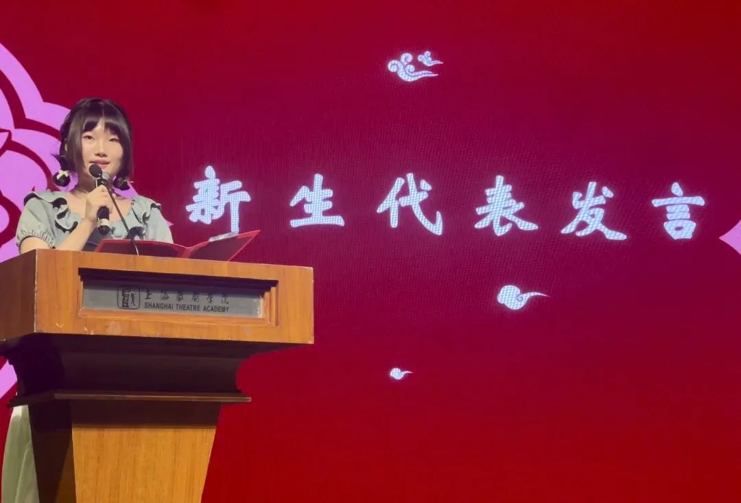 本科生汤艳韵、硕士生李淏杨、博士生李宜橙三位新生代表分别上台发言。24级戏剧与影视文学专业本科生汤艳韵同学在发言中讲到,源于内心深处的热爱与戏剧梦想,她坚定选择上戏戏文,并希望通过充实的四年大学生活成为一名有温度、有深度、有情怀的戏剧创作者。
