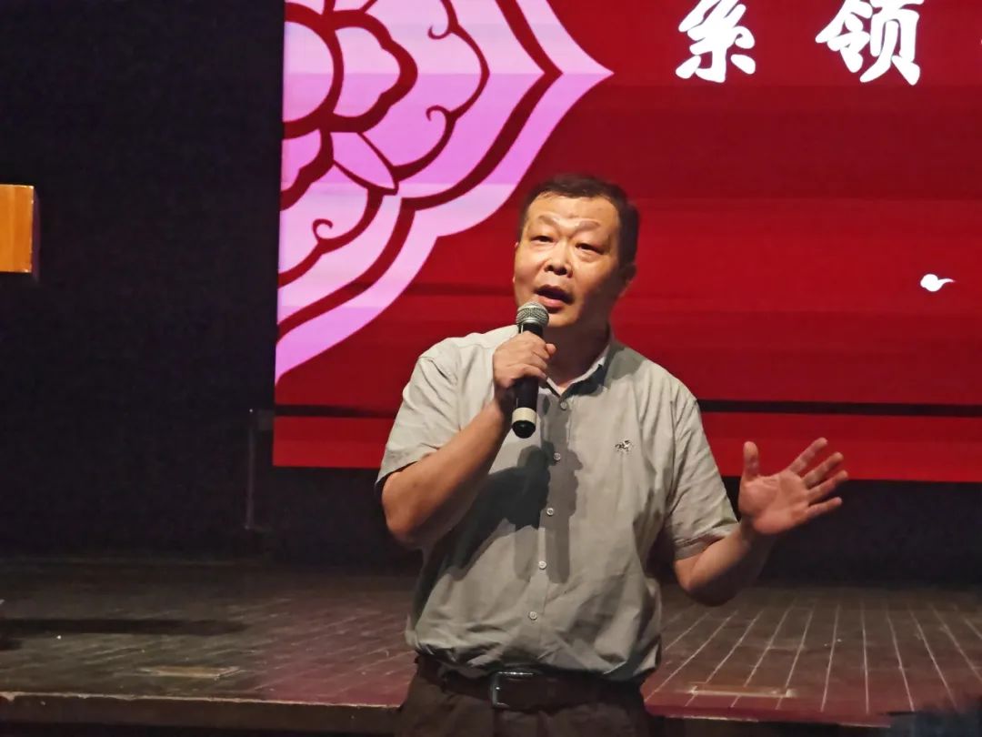 在场师生一起观看戏剧文学系介绍视频后,系主任陈军老师从《戏文名师》一书入手,从院系的历史沿革、专业设置与课程、师资力量、人才培养理念、教学科研创作成果、学生培养等方面进行详细讲解,使新生更好地了解我系的历史沿革和文化底蕴,为同学们提供了宝贵的信息和参考,也激发了他们对未来学习生活的期待和热情。