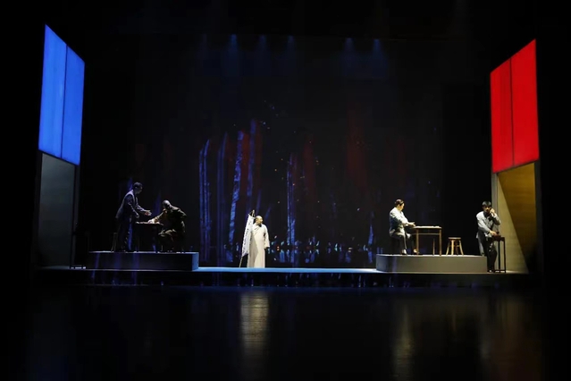 话剧《大江北望》为上海市重大文艺创作资助项目,于2023年11月在上海国际艺术节首演。该剧以明代永乐年间“江浦合流”水利工程的兴建始末为时代背景,戏剧性地展现了上海母亲河黄浦江的由来。作为一部上海本土的历史题材话剧,《大江北望》既有历史剧的厚重感,也有上海出品戏剧的当代感。