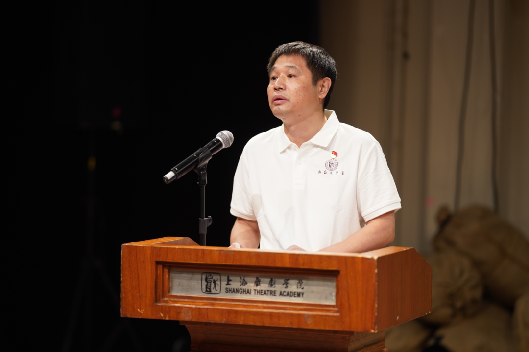 戏文系党总支副书记、系主任陈军做了题为“赓续上戏使命,彰显戏文人担当”的微党课,从沉浸式校史演出在思想内涵和艺术形式两方面引发的感触与思考引申开去,总结了戏文系近些年在教学上围绕思政引领力、人才原创力、科技支撑力,特别是“未来戏剧学”语境层面做出的响应和取得的成绩,指出要传承、践行前辈教育家精神,向身边名师学习,同时创新理念、打破壁垒,不断厚植梯队、积蓄后劲,彰显戏文人更大的作为和担当。