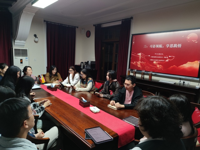 2024年10月31日,为深入学习贯彻党的二十届三中全会和全国教育大会精神,戏剧文学系学生第一党支部以红脉相承启新航,党旗引领显真章为主题,于华山路校区党建服务中心开展主题党日活动。活动重点学习了《中共中央关于进一步全面深化改革、推进中国式现代化的决定》,深入学习了习近平总书记在全国教育大会上的重要讲话精神和教育家精神,戏文系党总支副书记陈莹老师、戏文系学生第二党支部书记刘莹莹老师出席,戏文系学生第一党支部书记管润青老师主持,本次主题党日活动是24级研究生新生党员第一次参与我系学生支部活动。