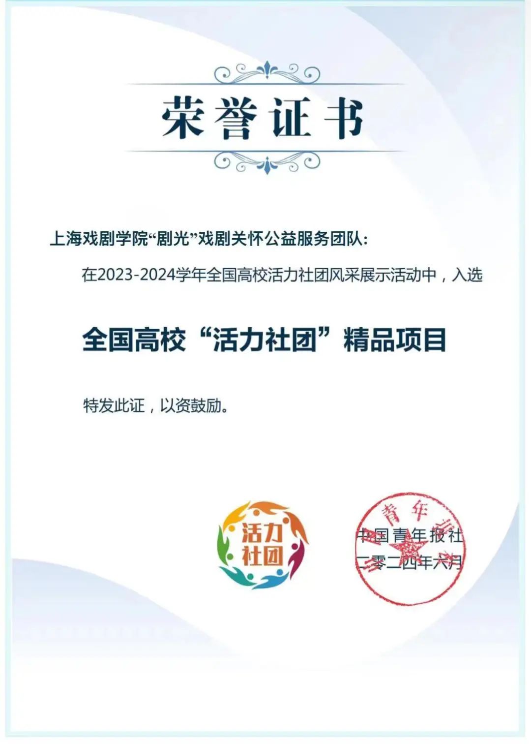 上戏“剧光”戏剧关怀公益服务团队由上海戏剧学院戏剧文学系党总支管理指导,对标党的二十大报告及《“十四五”规划和 2035 年远景目标纲要》中残疾人事业相关规划,秉承“助残助需,点亮人生”理念,力求用戏剧表达丰富残障人士及有需人群的文化体验、点亮残障人士及有需人群的生活梦想。