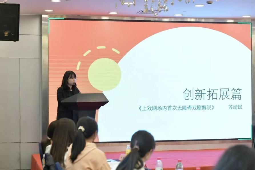 2023年10月,在上海市残疾人文化体育促进中心主办的研讨会上,上戏“剧光”戏剧关怀公益服务团队代表作了“上戏剧场内首次无障碍戏剧解说”的经验分享。活动聚焦无障碍电影制作,推动阳光院线事业的发展,为残障人士提供更多文化体验机会。