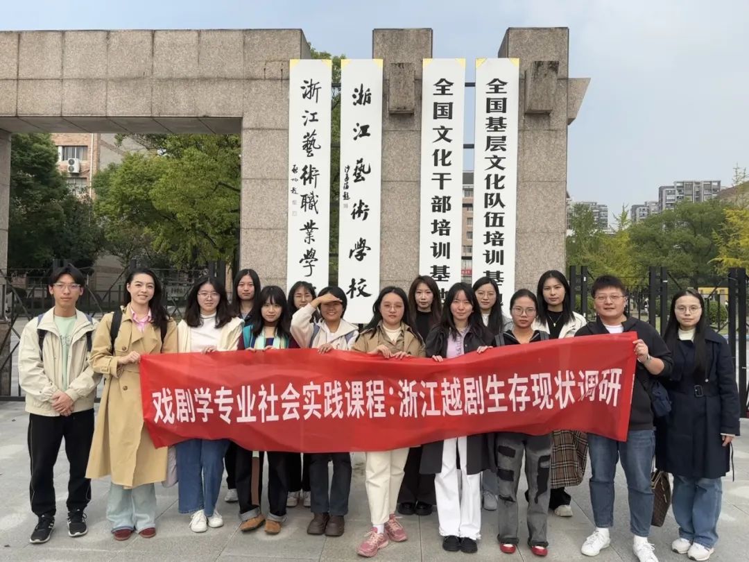 去年,该门课组织了21级学生赴苏州(昆曲的发源地)考察昆剧的生存现状,相关调研成果在《光明日报》舞台评论版块头条发表。今年10月28日-11月4日,戏剧学专业组织了22级本科学生和部分硕士博士生,在黄静枫、丁盛、郭红军、杨斯奕等老师的带领下,赴浙江杭州、绍兴(柯桥区、上虞区、嵊州市)考察越剧的生存现状。