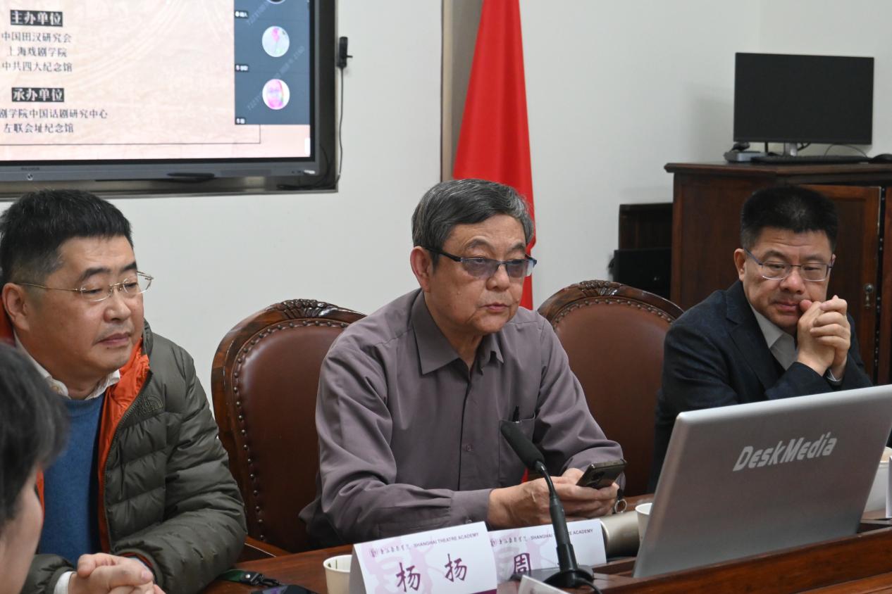 下午的学术交流由中国田汉研究会副会长、上海戏剧学院杨扬教授主持。在开幕式上,他介绍了到场的与会领导与嘉宾,并对各位专家学者的莅临表示热烈的欢迎。随后开幕式进入致辞环节,由中国田汉研究会会长周光、上海戏剧学院院长黄昌勇、上海左联会址纪念馆馆长何瑛先后致辞。