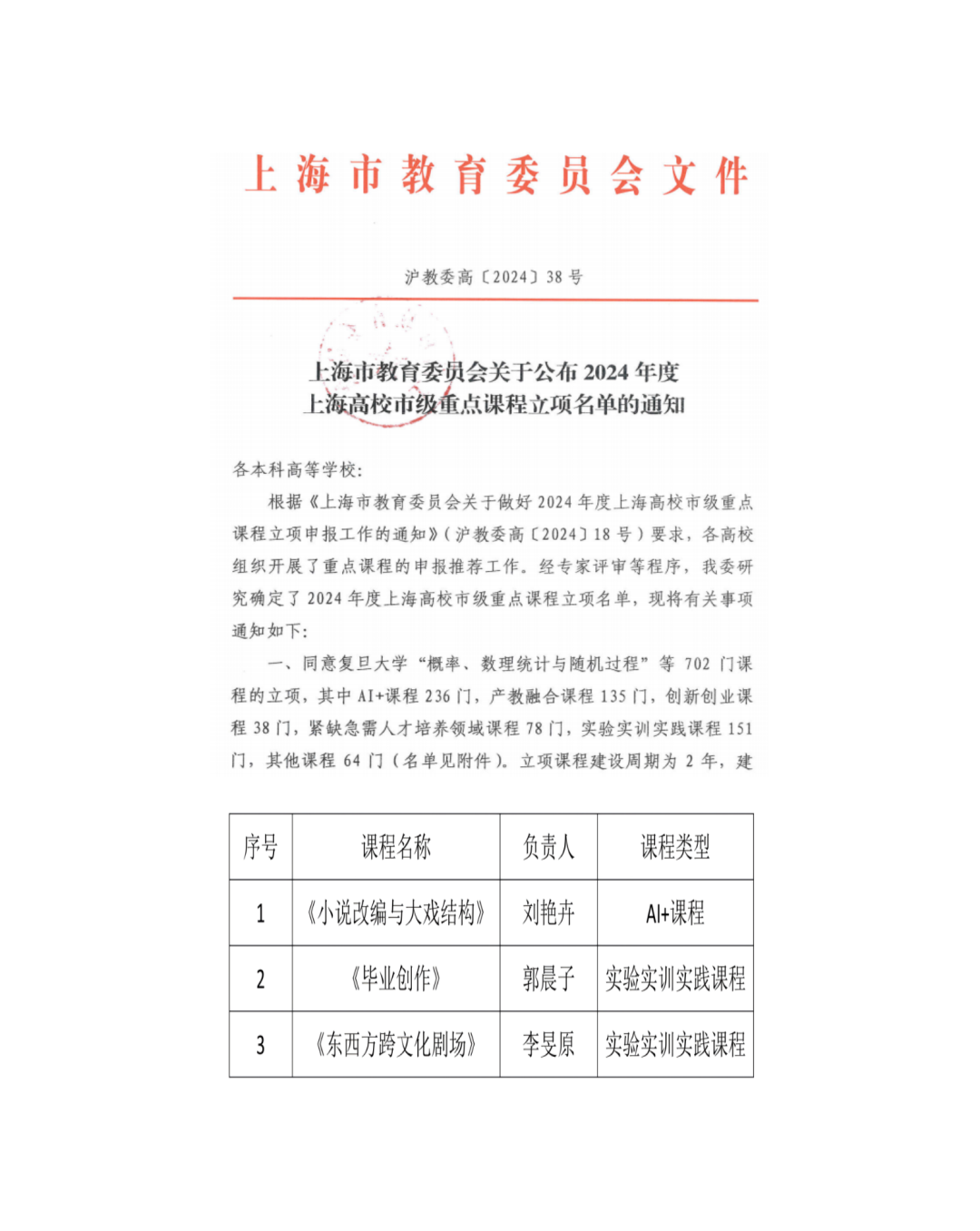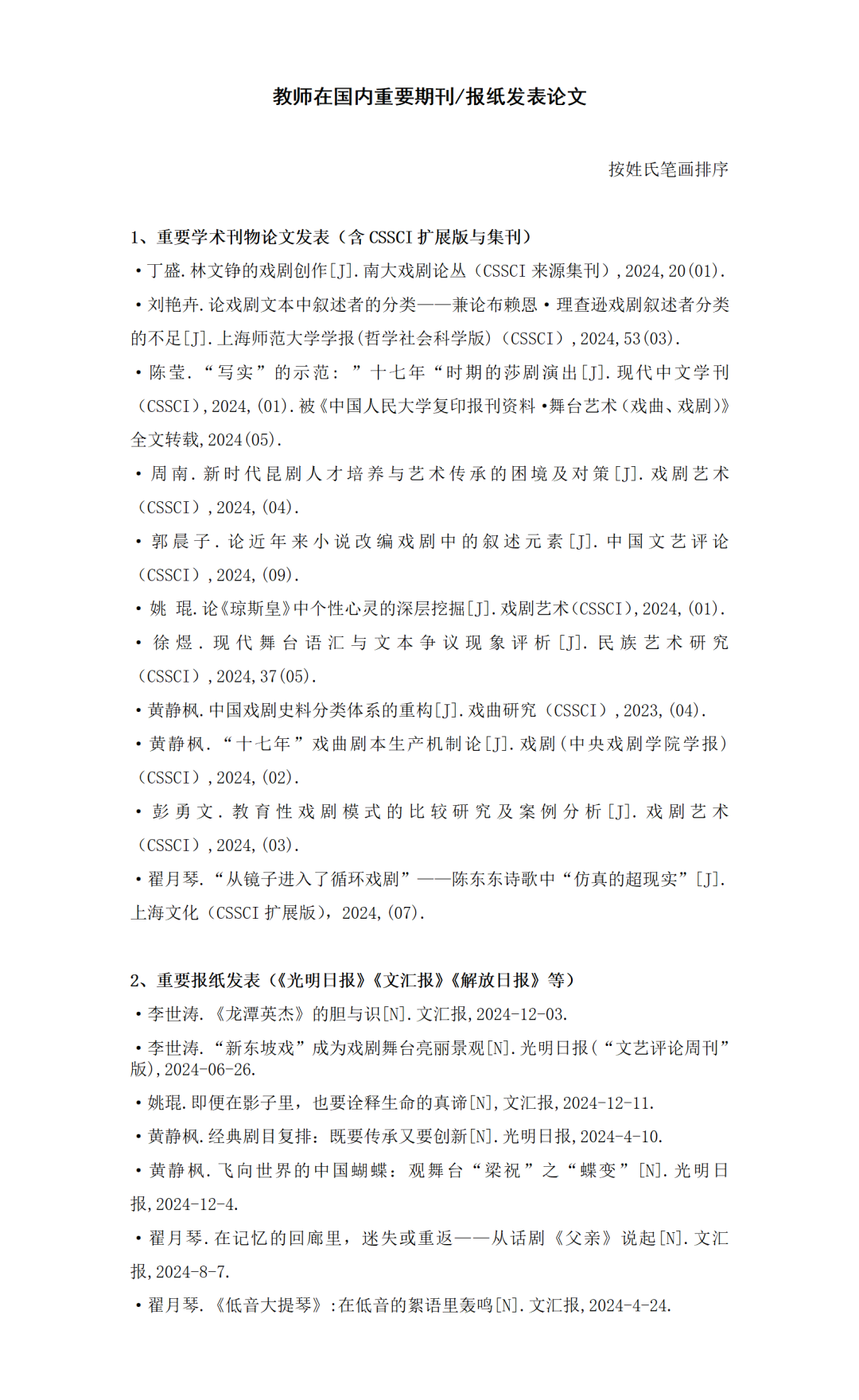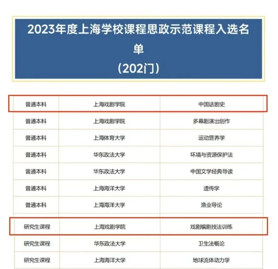 专业和课程建设成绩显著,戏剧影视文学、戏剧学专业均位居软科第1,戏剧教育专业居软科第2,师生在IFTR,PSI,CCEF等国际论坛发表学术演讲;5门课程入选上海市级课程思政示范课程、获市级重点课题立项。6名教师荣获市级“优秀指导教师”称号。