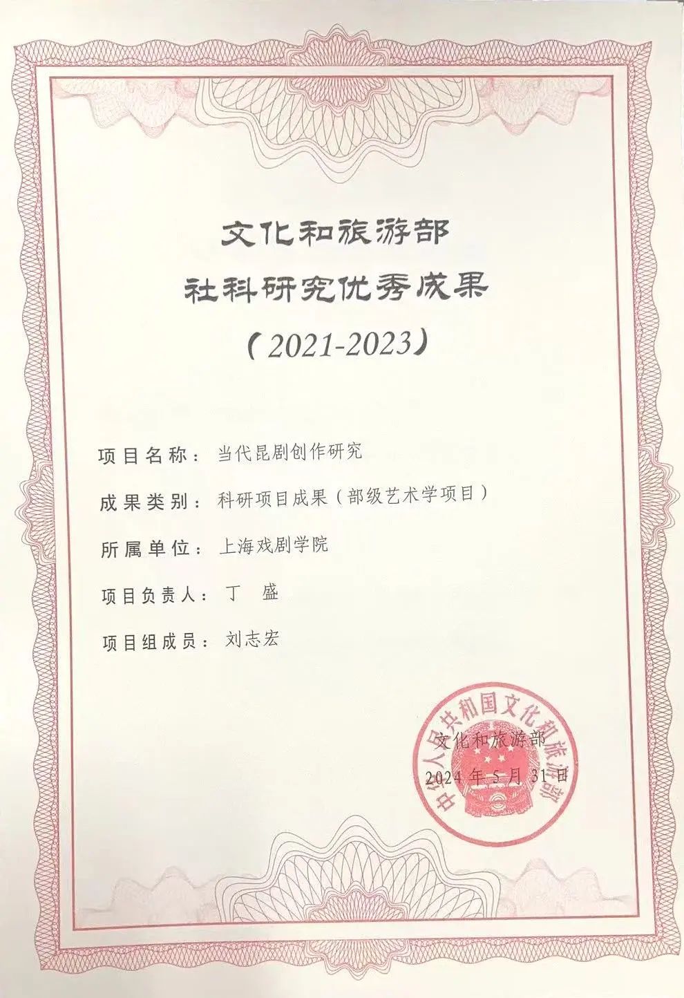 丁盛副教授的《当代昆剧创作研究》获文化和旅游部社科研究优秀成果