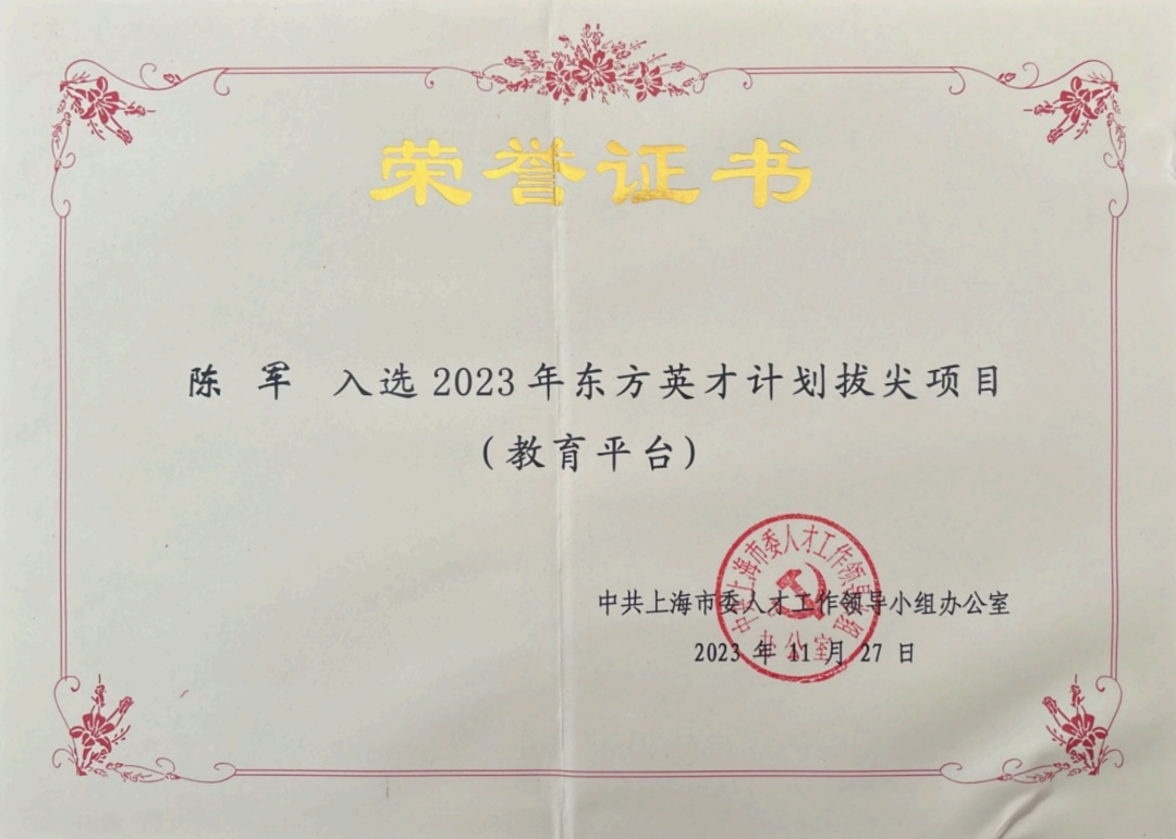 人才称号上,陆军教授荣膺“全国优秀教师”,中国编剧学教师团队获上海市教委事业单位集体记功,陈军教授担任一级学会副会长,沈亮教授获市级“高校美育名师工作室”,陈军、刘艳卉、沈亮、黄静枫4名教授入选“东方英才计划”。