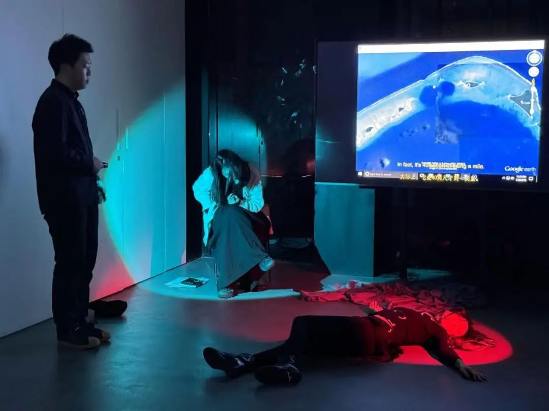 《剧场理论与实践》课程前两次行课时曾与上海西岸美术馆合作,分别以《万物的声音》和《肖像的印象》法国庞毕度特展为依托设计课程。这是李旻原老师在产学研教学与跨界美育方面的新尝试,获得馆方与学生的广泛好评,并入选上戏研究生一流课程。本学期课程与上海外滩美术馆合作,在这一全新空间中,同学们与《林顿·约翰逊——最佳合成答案》个人展进行了深入互动,重新定义了观演关系,共同探索了戏剧艺术的多种可能性。
