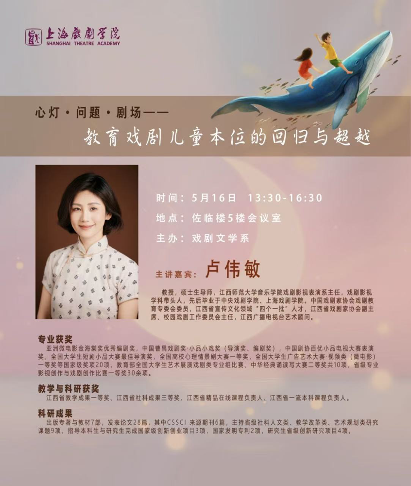 为深入探索戏剧教育剧本创作路径,推动戏剧教育领域的学术交流与实践创新,上海戏剧学院戏文系举办的戏剧教育创作方法专题讲座“心灯-问题-剧场:教育戏剧儿童本位的回归与超越”于近期在佐临楼5楼会议室顺利举行。