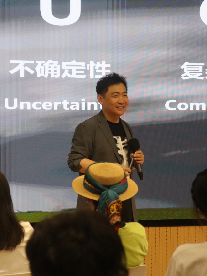 本次见面会还特别邀请了优秀校友代表、上海骑鲸客创意营销机构创始人王霆进行分享。他结合自己从上戏毕业后的创业经历,生动地阐释了戏剧思维在商业领域的价值。他指出,我们正处在一个充满易变性、不确定性、复杂性和模糊性的“乌卡时代”,戏剧赋予我们的能力,恰恰是应对不确定性的有力武器。他通过将戏剧的叙事、体验和审美融入商业营销、乡村振兴和企业赋能等多个领域,成功地将艺术与商业完美结合,为同学们展示了戏剧专业广阔的应用前景和无限的可能性。
