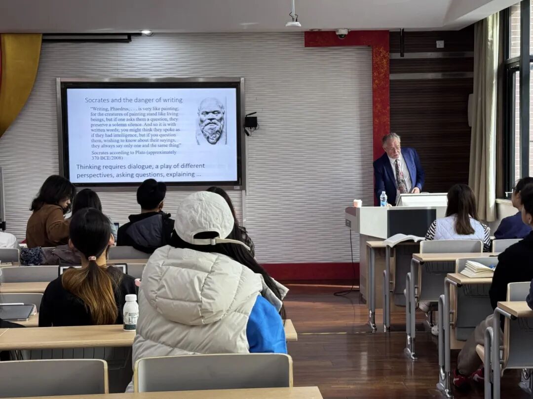 11月10日,剑桥大学教育学院教授、数字教育未来中心(DEFI)创始人兼学术负责人Prof. Rupert Wegerif,带来了主题为“The Importance of Art and Drama Education in the Age of AI”(“人工智能时代下艺术与戏剧教育的重要性”)的讲座。作为对话式教育领域权威学者,Wegerif教授围绕“人工智能时代下教育体系的意义”、“作为新技术的生成式AI如何促使我们重新思考教育的目的”以及“艺术和戏剧在教育愿景当中扮演怎样的角色”几个问题展开演讲,为在场师生提供了前沿学术视角。本次讲座由戏剧文学系党总支副书记、系主任沈亮老师主持。