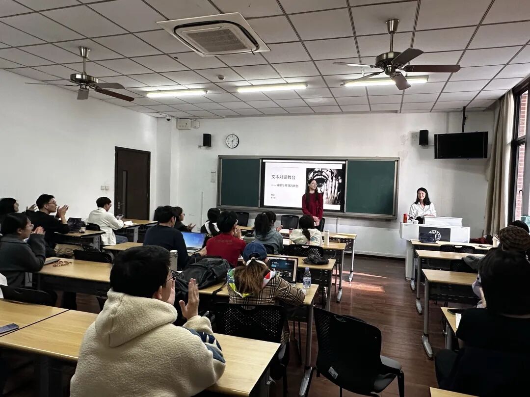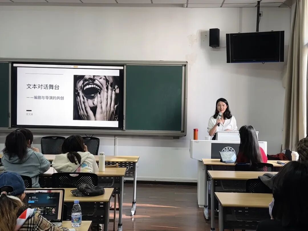 查文渊老师是当代优秀的青年戏剧导演,有着中西合璧的高学历背景和艺术视野。她导演的作品题材多样、风格多元,荣获“上海壹戏剧大赏年度新锐导演”等多个专业奖项。本次讲座,她从思维差异、建立对话和共创模式三个维度展开分享,并结合自身丰富的创作经历与实践阅历进行实例剖析,为现场师生带来了一场生动且兼具理论深度和实用价值的知识盛宴,更让在座戏文学子看到了当代青年之于戏剧创作的无限可能。