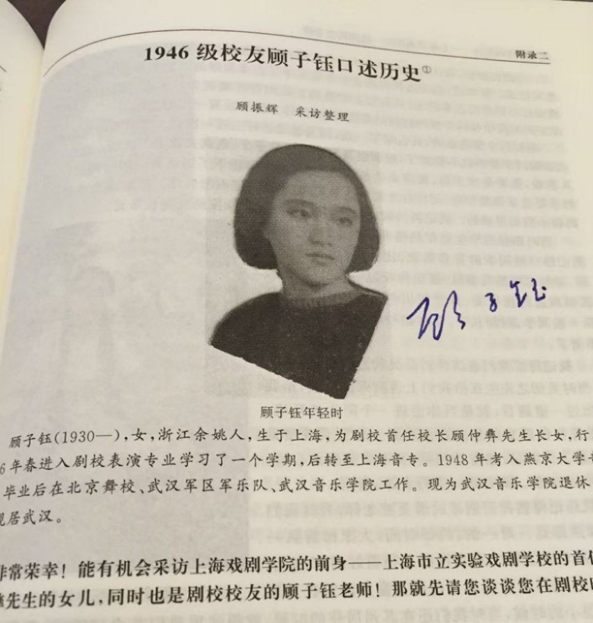 2015年,顾子钰老师在她口述历史扉页上的签名