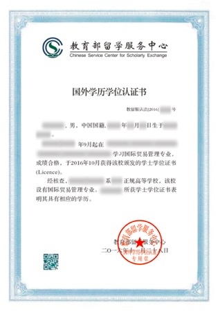 注:中国(教育部)留学服务中心按照国(境)外文凭和学历认证制度给予认证,学位学历完整,学士学位认证为本科学历。学生可报考国内公务员考试及参加职称评定,可享受海外归国人员落户等各项优惠政策。