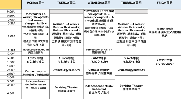 (以上为暑期课程表)