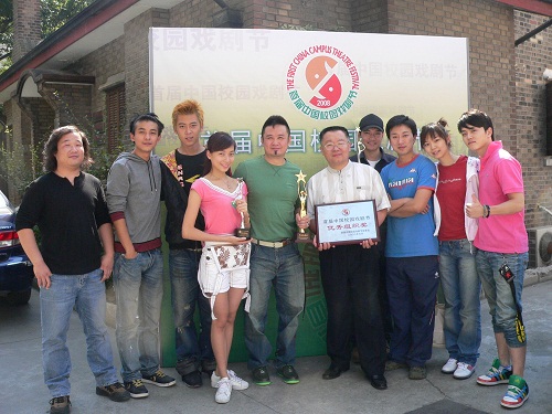 10月7 日 首届中国校园戏剧节在上戏剧院开幕。来自全国各地高校的23台剧目参加演出,学院选送的话剧《风铃》获优秀剧目奖,《风铃》演员李艺科、高婷婷被评为“戏剧之星”。