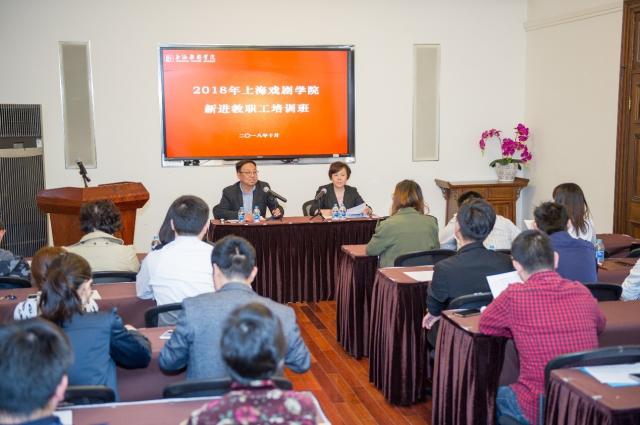 在开班仪式上,楼巍书记回顾了学校的发展历程和历史使命,结合国家战略及上海精神,在总结学校近年取得的进步和成绩的基础上,与大家分享了学校未来的发展目标和战略构想。他希望新进教职工全面了解上戏的过去、现在和未来,认真学习学校第二次党代会精神,尽快融入学校,明确行为规范,掌握教学研究的规律,此外他还提出殷切希望:一是要志存高远,要心怀伟大事业;二是要脚踏实地,认真落实自身工作;三是要胸怀宽广,善于和他人团结合作。最后,他强调,身处伟大的新时代,立足卓越的全球城市,全校师生应共同携手,脚踏实地,用自己的青春与汗水在上戏建设“平台型大学”这一进程中书写属于自己浓墨重彩的一笔。随后,三位新老教师进行了交流发言,陆军老师以一位老教师的身份,给新进教师分享了七句话,让大家受益匪浅;两位新进教师邵旻和刘莹莹老师也分别以专任教师及辅导员的身份,表达了自己在上戏工作的期待与展望。