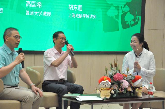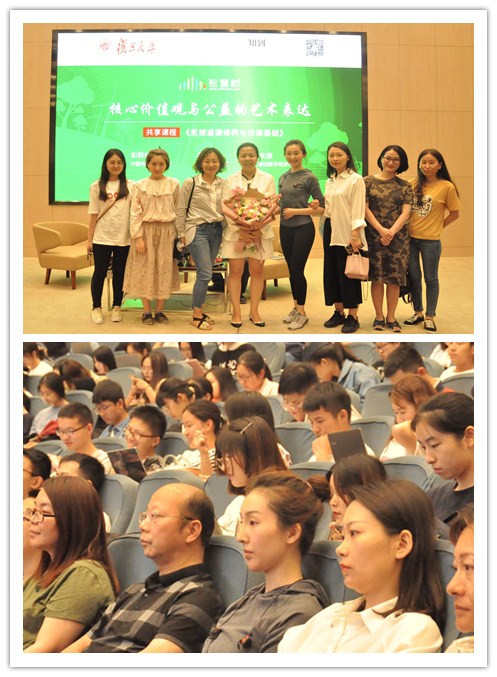 2019年6月11日晚,在复旦大学邯郸路校区逸夫科技楼一楼报告厅,上海戏剧学院胡东雁老师与中国传媒大学的和群坡教授、复旦大学的高国希教授一同对话“社会主义核心价值观与公益的艺术表达”课程思政公开课,同步面向全国66所高校的25275名学生进行直播互动,共上一堂思政课。课程汇集了公益广告40年来的精品力作,主题为如何把社会主义核心价值观落细、落小、落实,将思想政治理论课与感人的公益广告、艺术叙事与美育德育融为一体。我校继续教育学院常务副院长马麟鸿老师携继续教育学院师生到直播现场参加了这次有意义的思政课。