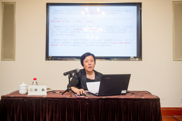 学校党委副书记胡敏以“不忘初心、牢记使命”为题,纵观历史、清晰明了的从中国共产党、教育和上戏办学三个角度阐述了初心和使命。首先用三个问题:中国共产党的初心和使命是什么?初心和使命是怎么提出并发展的?为什么要强调初心和使命?准确理解了中 国共产党的初心和使命是为中国人民谋幸福,为中华民族谋复兴;其次从教育的发展历史,教育体系的建立以及教育对现代化建设的重要意义清醒把握了教育的初心和使命;最后,从上戏建校初期的戏剧艺术教育家的办校初心,到我们这一代上戏人应当承担的责任和使命,阐述了践行上戏办学的初心和使命的重要性。清晰的脉络,完整的架构,为机关第一支部的全体党员上党课开了一个好头。