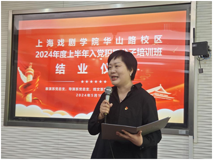 5月16日中午,上海戏剧学院表演系党总支、导演系党总支、戏文系党总支和舞美系党总支在红楼209教室举行了2024年上半年华山路校区入党积极分子培训班结业仪式。上海戏剧学院党委副书记胡敏、表演系党总支副书记朱锋、戏文系党总支副书记陈莹、舞美系党总支副书记孙蕾、四院系辅导员老师和33位入党积极分子参加了结业仪式,结业仪式由导演系党总支书记尹悦蓉主持。